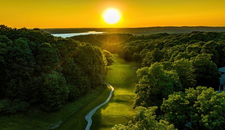 This Arnold Palmer gem features multiple elevation changes, doglegs, water hazards and well-placed traps alongside scenic views of Lake Bellaire.
