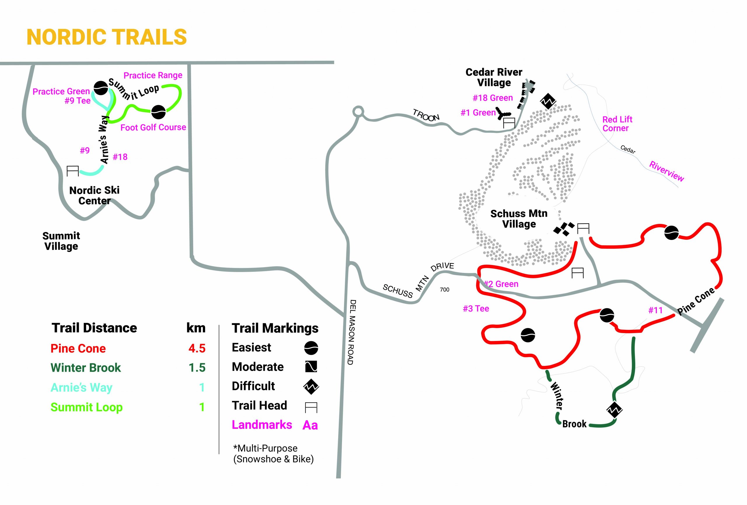 | Trail | Groomed | Trackset | Skating | Kilometers |
